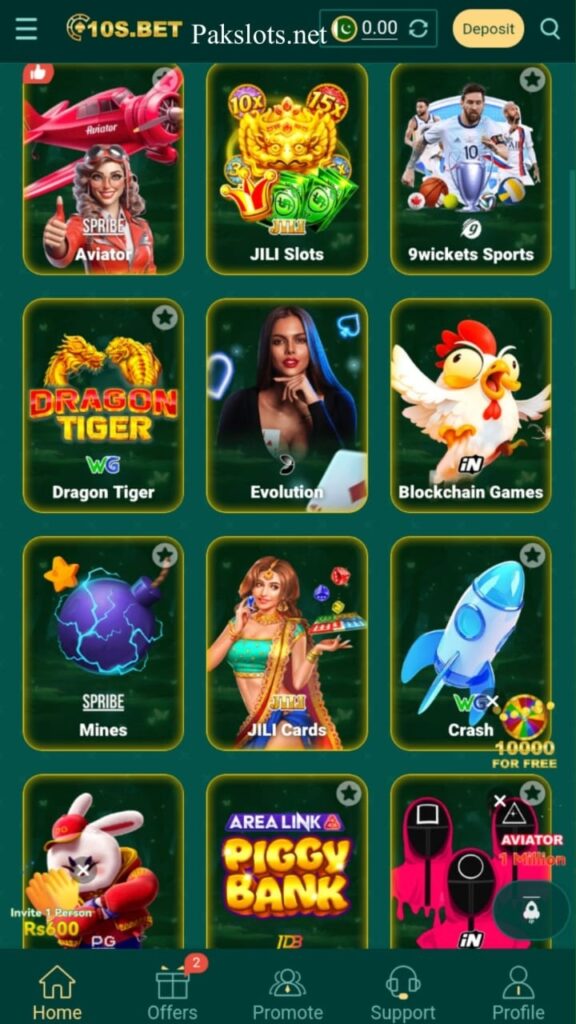 10S Game offers a wide range of games to keep users engaged while providing multiple earning opportunities: