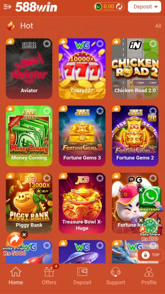 588Win Game is a mobile based online earning app that allows users to play games and win cash rewards. It includes different categories such as slot games, card games, and quick prediction games. The main idea of the app is simple: Play games, Win rewards and Withdraw money These types of apps are becoming popular in Pakistan because they offer easy registration, simple gameplay, and local payment options.