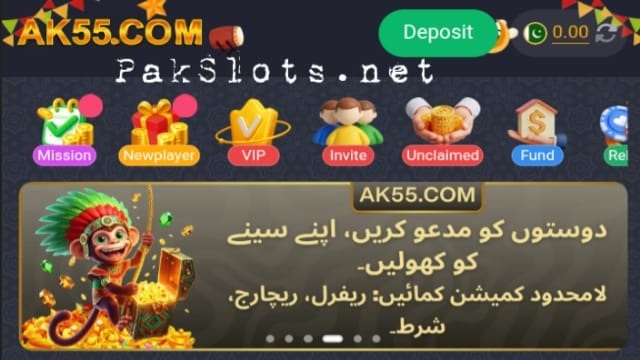 AK55 Game is an online earning and entertainment app developed specifically for Pakistani users. It offers a mix of prediction games, slote style, live challenges, and cashearning opportunities where players can use their intuition and strategy to win real money. If you are interested in more earning platforms, you can also read our detailed review of KK222 Game online earning app in Pakistan.