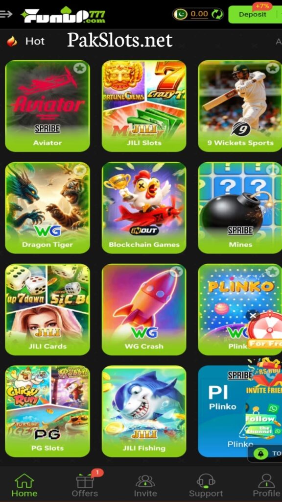 Available Games Inside the Funup777 App: