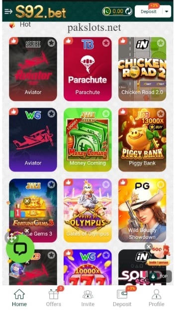 S92 Game is a new online earning application in Pakistan that combines gaming and income generation in one platform. It offers users a variety of casino style games such as Teen Patti, Rummy, Dragon Tiger, Ludo, and Slot Machines, along with many exciting mini games.